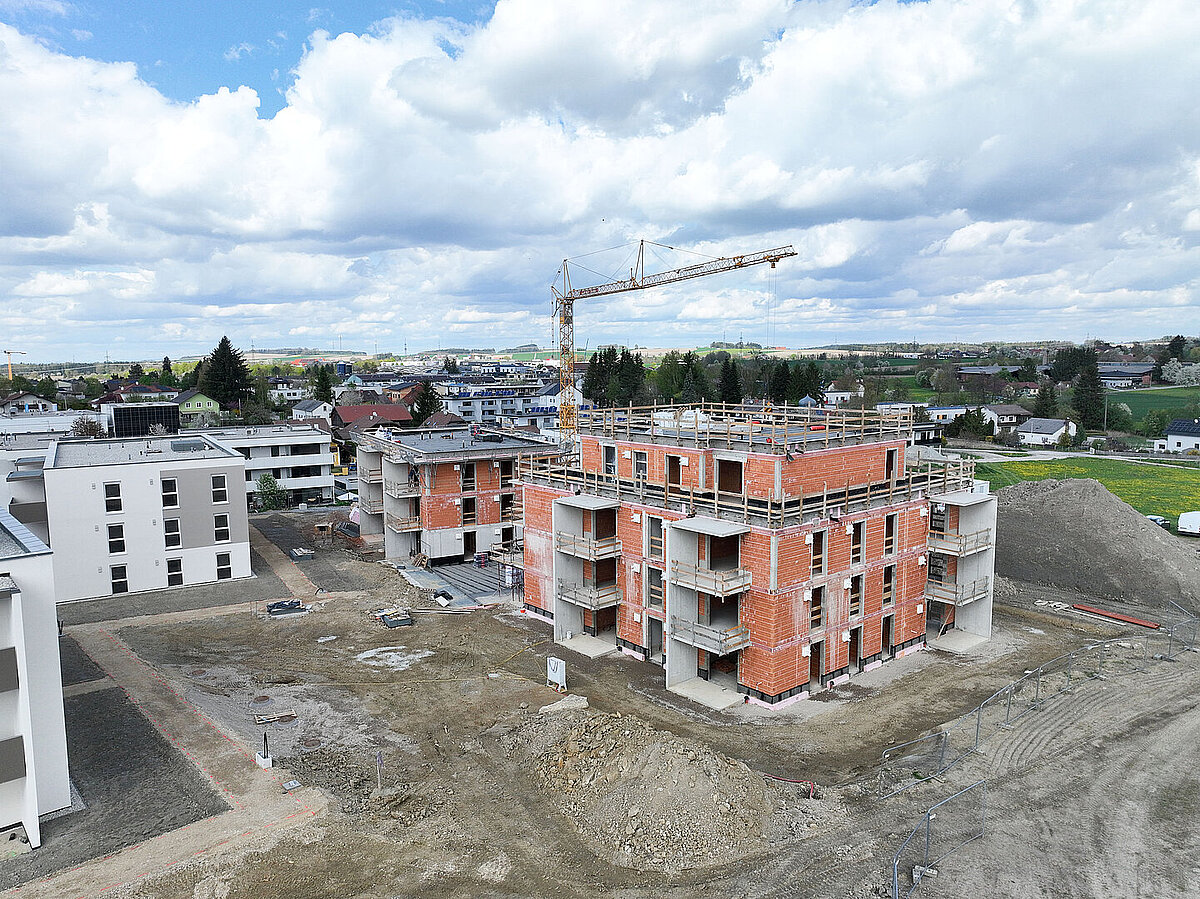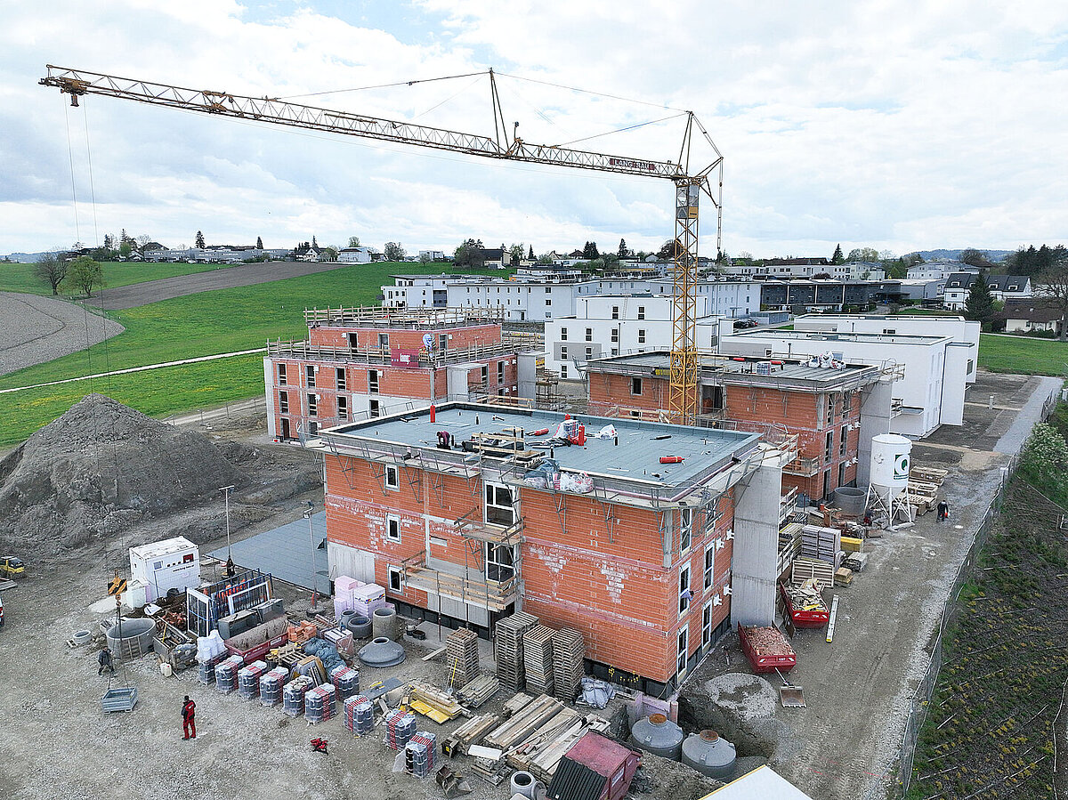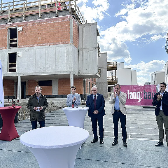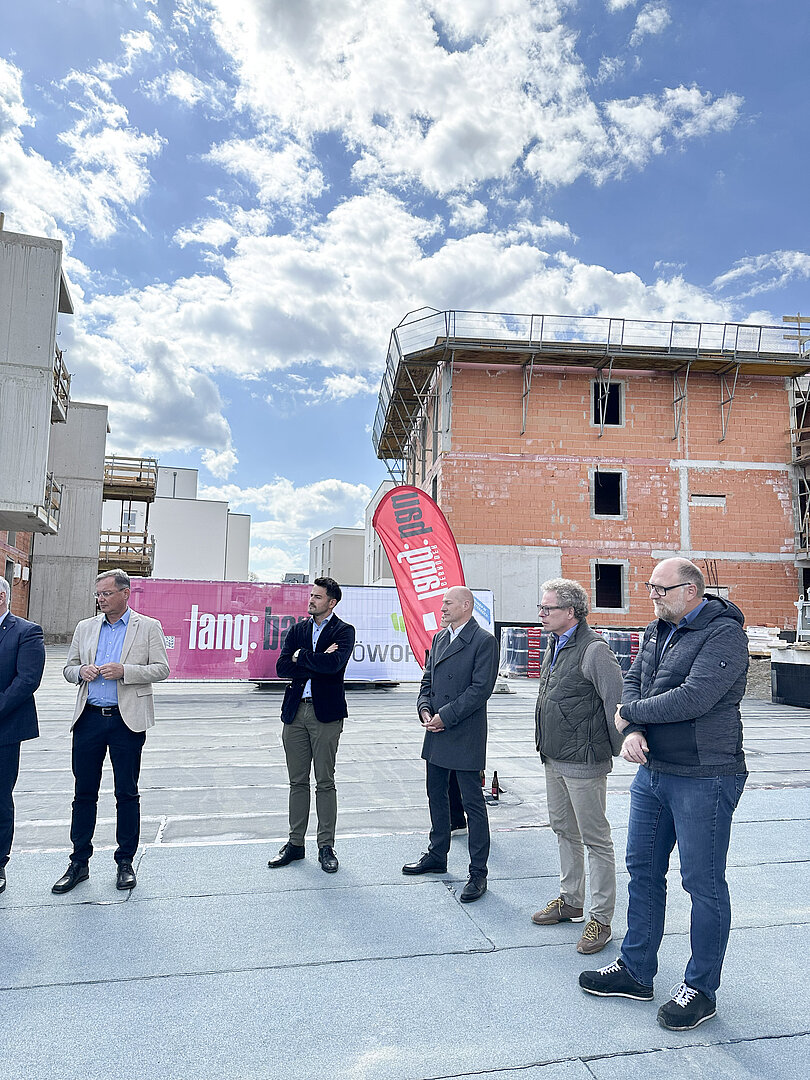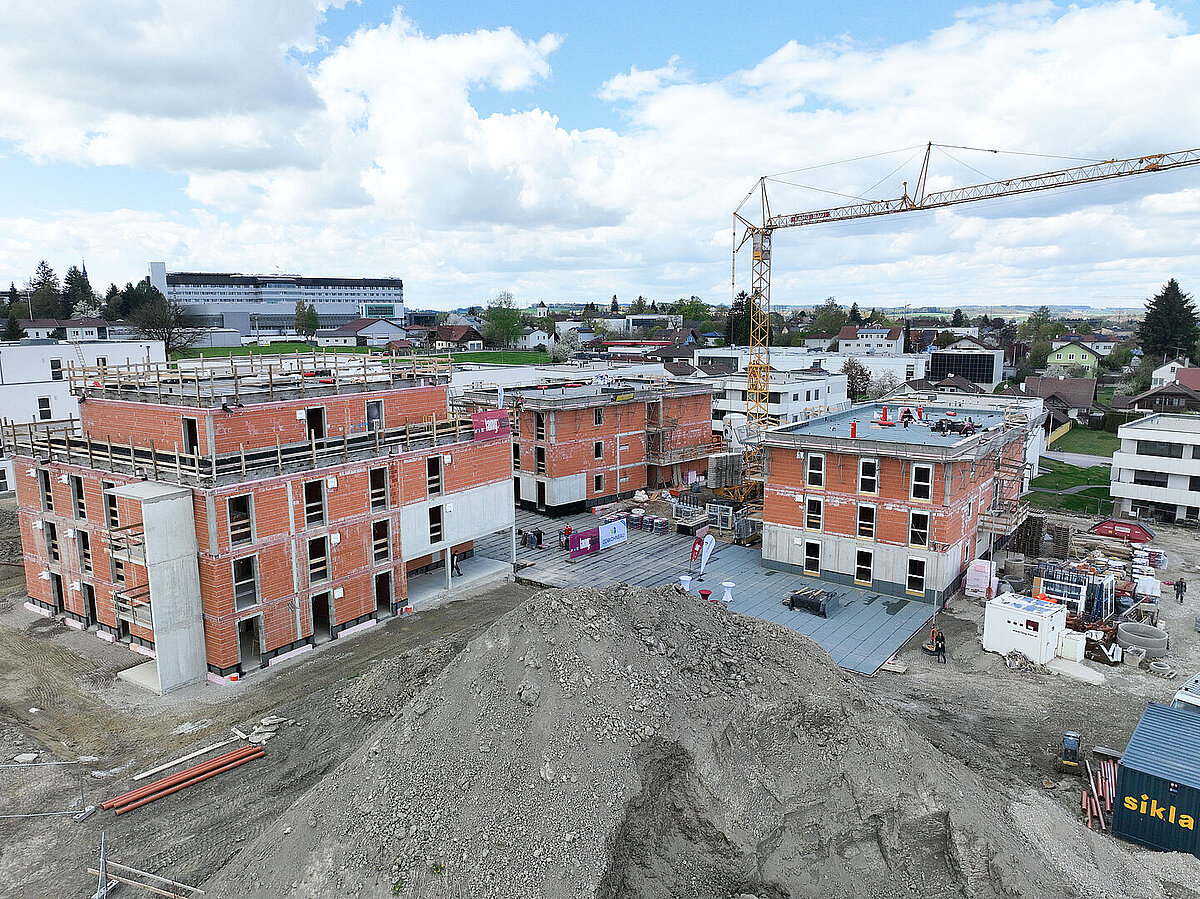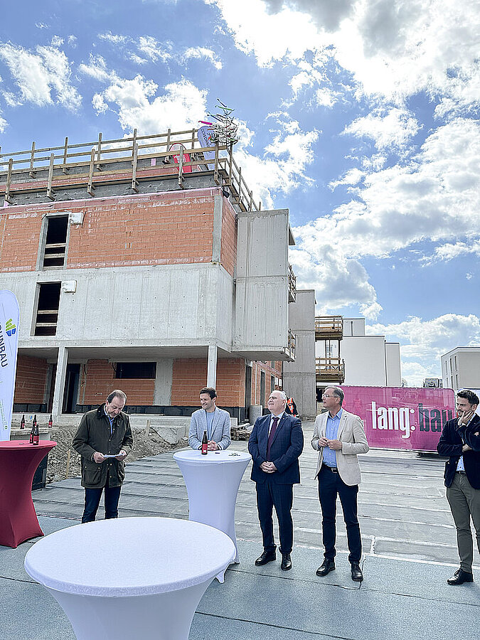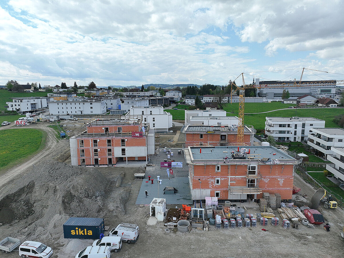 Am 20. April fand im Beisein der Baufirma Lang Bau, weiterer ausführender Unternehmen sowie geladener Ehrengäste die Gleichenfeier für den zweiten Bauabschnitt statt, in dem 34 geförderte Mietwohnungen mit Kaufoption errichtet werden. In dieser zweiten Bauetappe werden drei Wohnhäuser realisiert, die über eine gemeinsame Tiefgarage miteinander verbunden sind. Ergänzend dazu werden im Außenbereich zusätzliche Parkmöglichkeiten für Bewohner:innen und Besucher geschaffen.