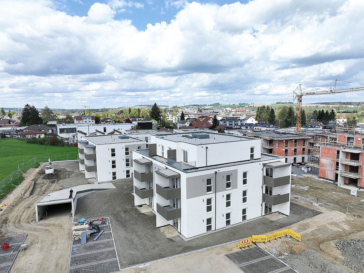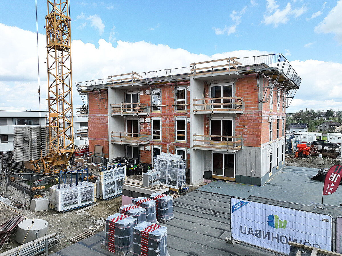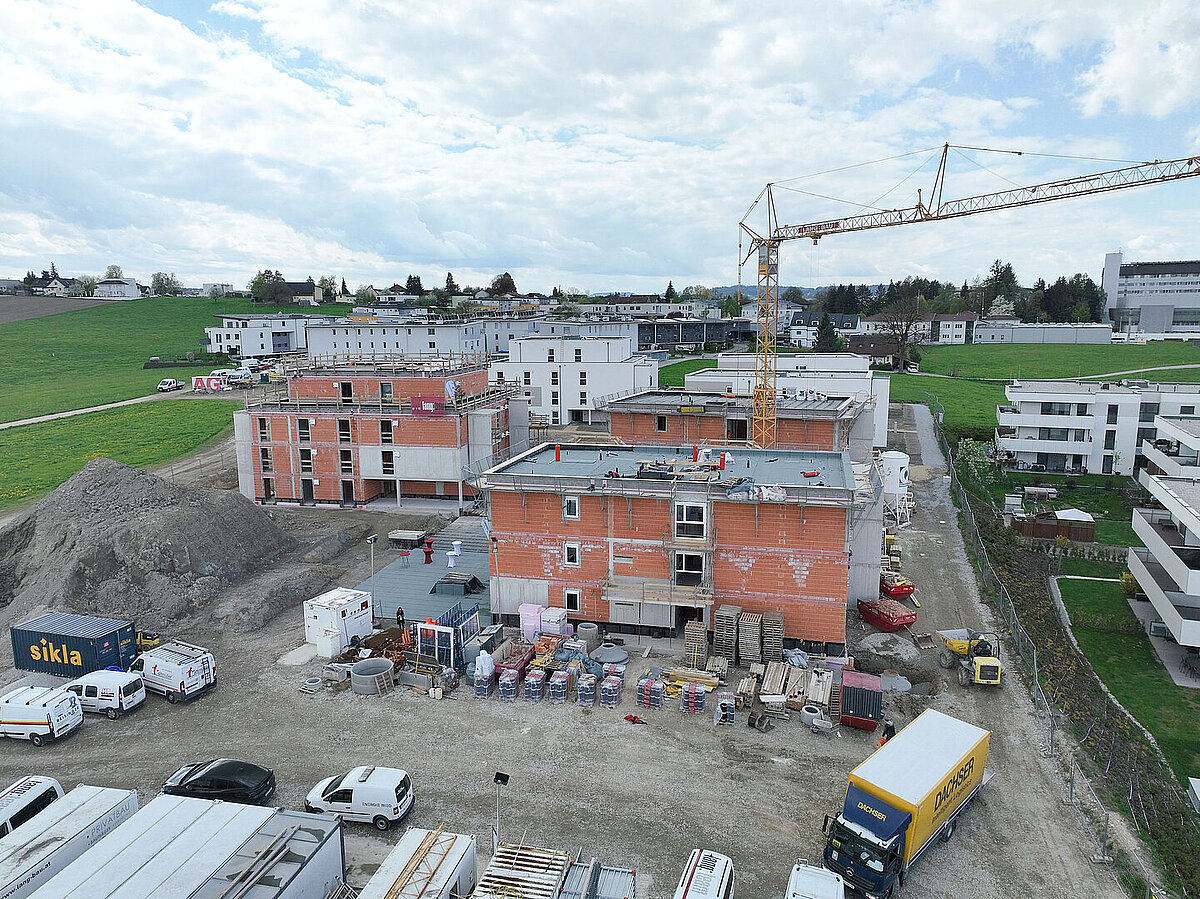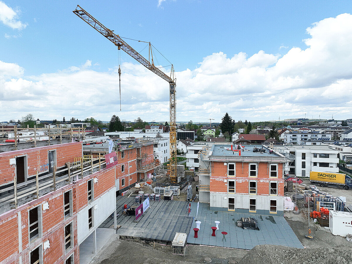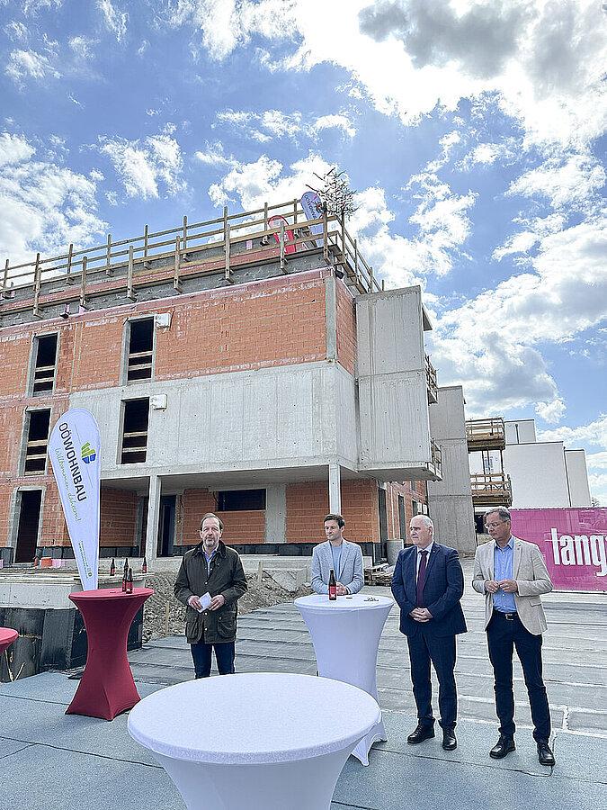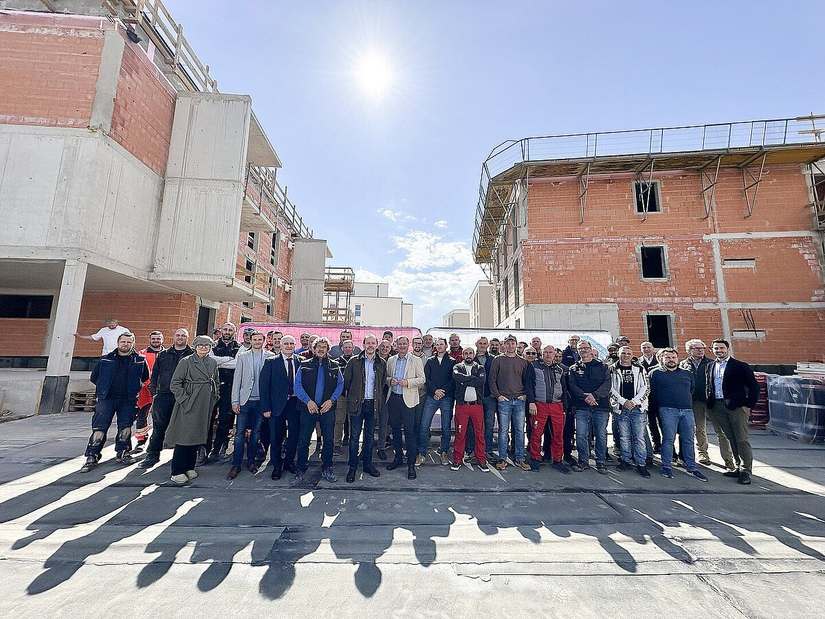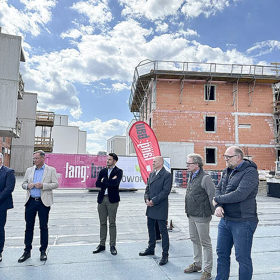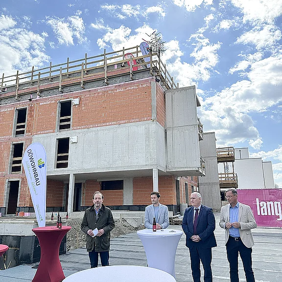 Am 20. April fand im Beisein der Baufirma Lang Bau, weiterer ausführender Unternehmen sowie geladener Ehrengäste die Gleichenfeier für den zweiten Bauabschnitt statt, in dem 34 geförderte Mietwohnungen mit Kaufoption errichtet werden. In dieser zweiten Bauetappe werden drei Wohnhäuser realisiert, die über eine gemeinsame Tiefgarage miteinander verbunden sind. Ergänzend dazu werden im Außenbereich zusätzliche Parkmöglichkeiten für Bewohner:innen und Besucher geschaffen.