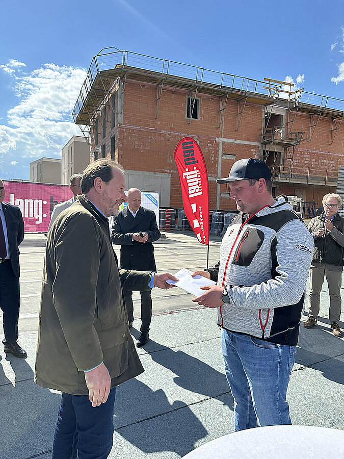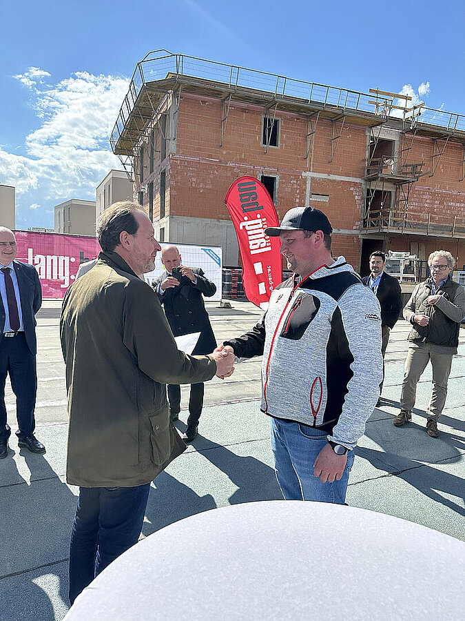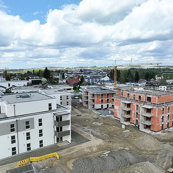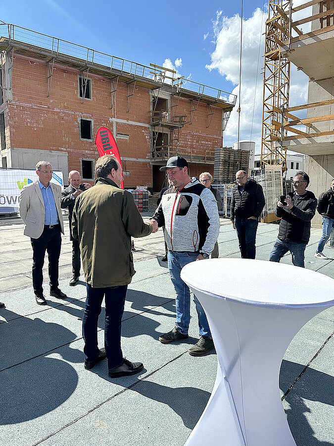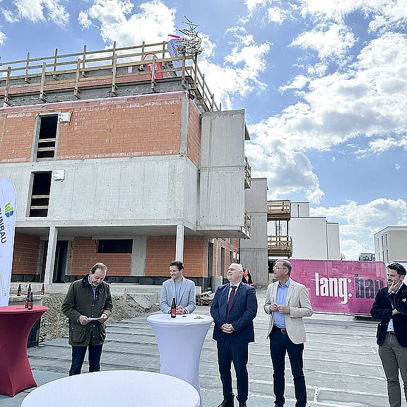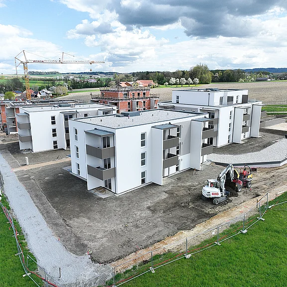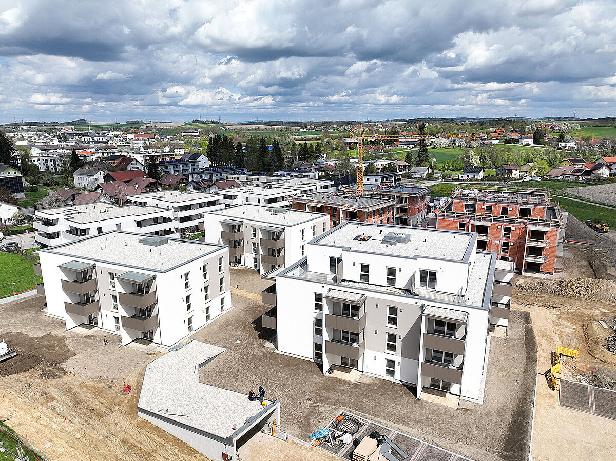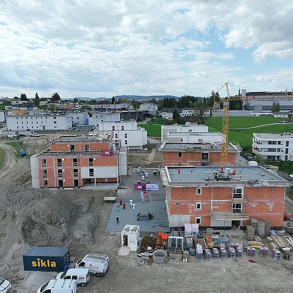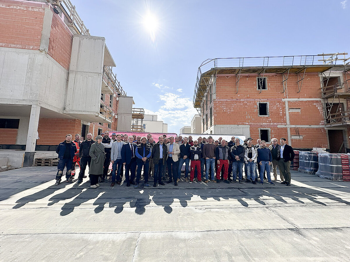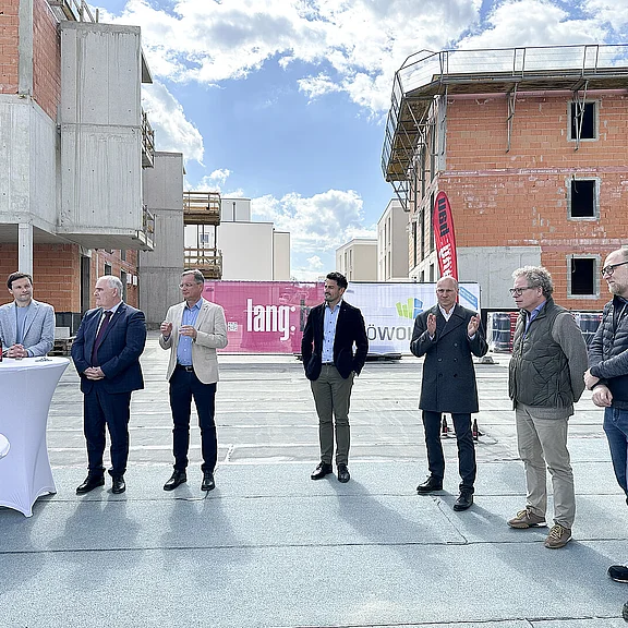 Am 20. April fand im Beisein der Baufirma Lang Bau, weiterer ausführender Unternehmen sowie geladener Ehrengäste die Gleichenfeier für den zweiten Bauabschnitt statt, in dem 34 geförderte Mietwohnungen mit Kaufoption errichtet werden. In dieser zweiten Bauetappe werden drei Wohnhäuser realisiert, die über eine gemeinsame Tiefgarage miteinander verbunden sind. Ergänzend dazu werden im Außenbereich zusätzliche Parkmöglichkeiten für Bewohner:innen und Besucher geschaffen.