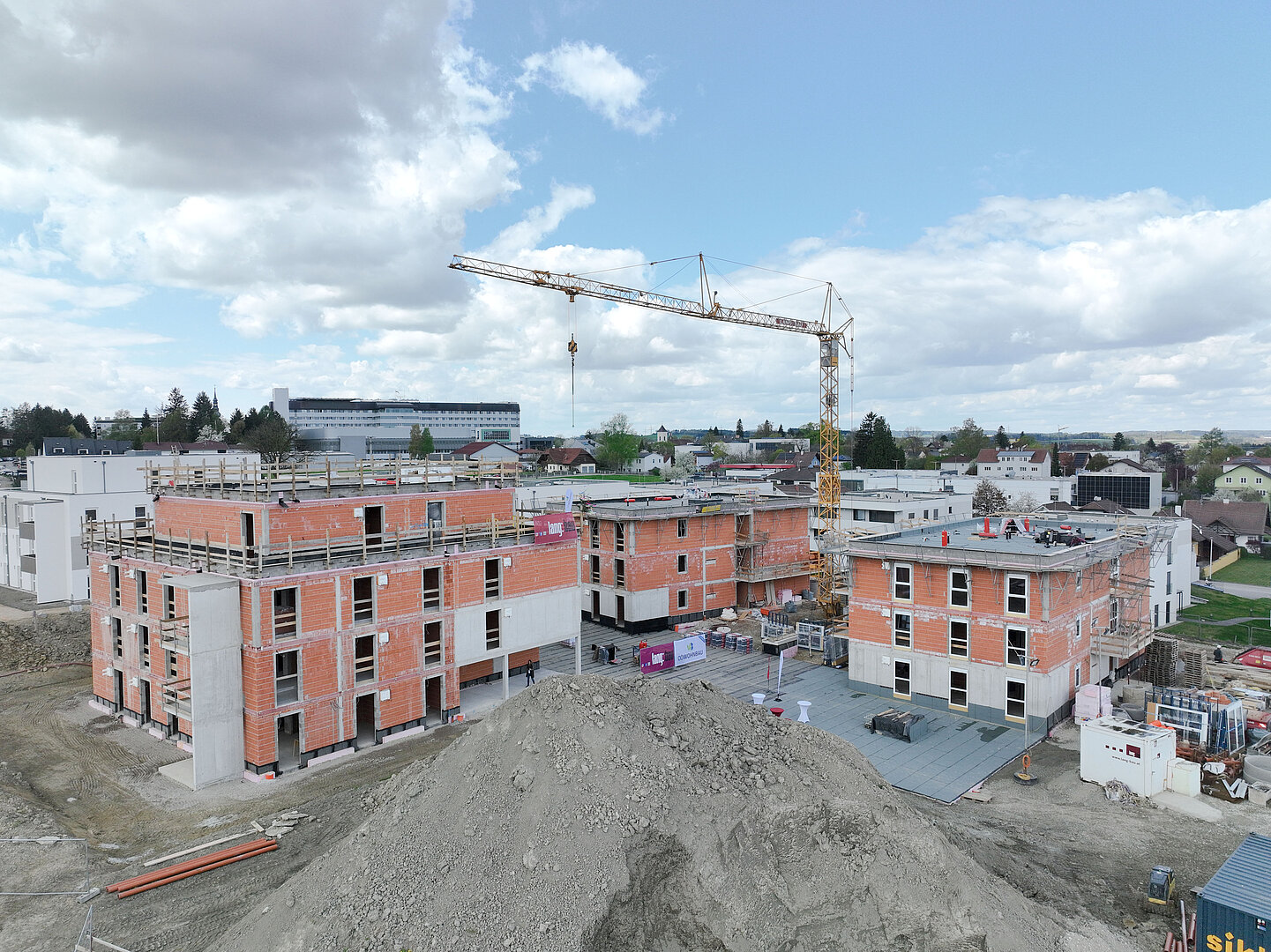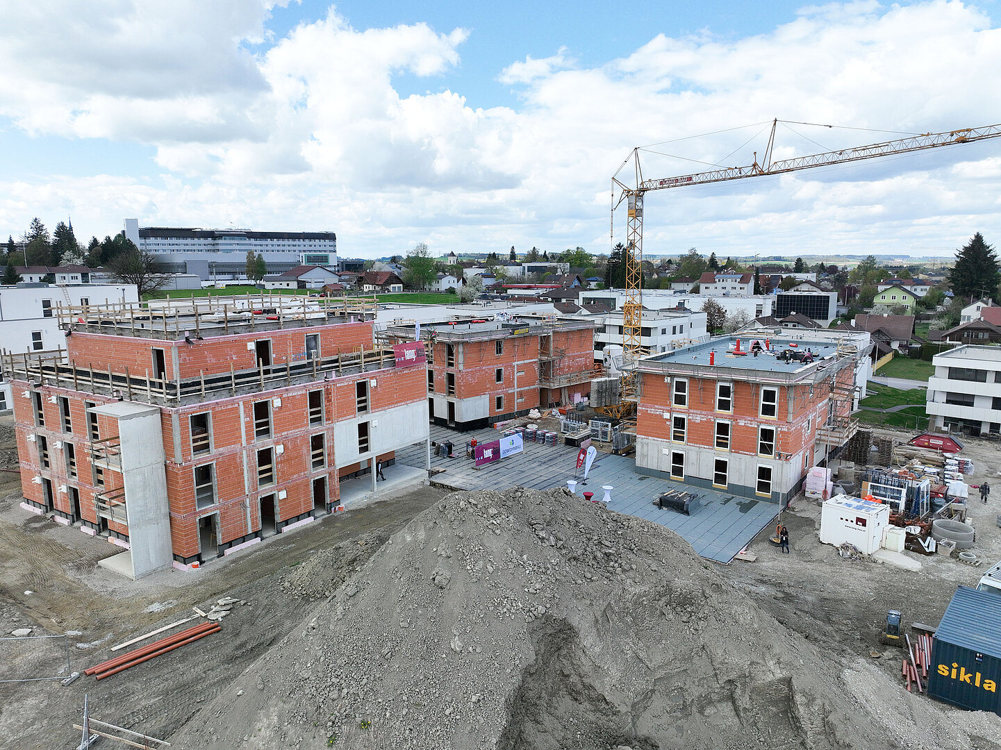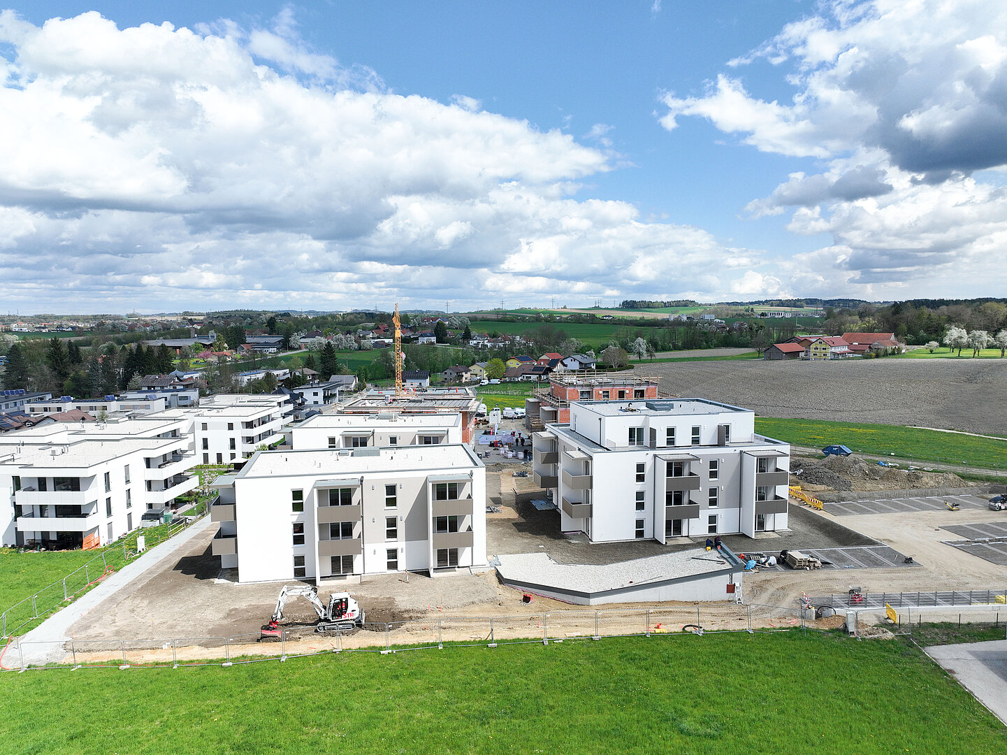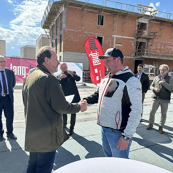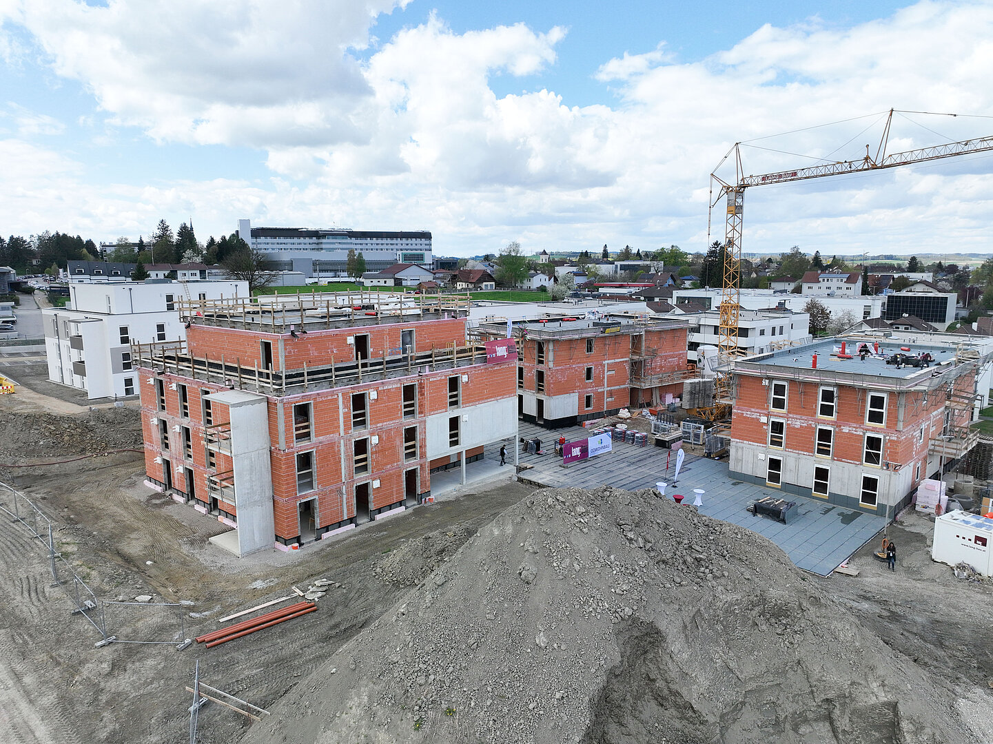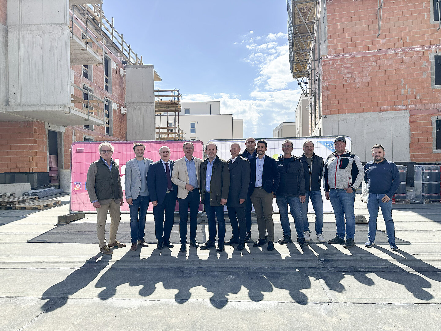 Am 20. April fand im Beisein der Baufirma Lang Bau, weiterer ausführender Unternehmen sowie geladener Ehrengäste die Gleichenfeier für den zweiten Bauabschnitt statt, in dem 34 geförderte Mietwohnungen mit Kaufoption errichtet werden. In dieser zweiten Bauetappe werden drei Wohnhäuser realisiert, die über eine gemeinsame Tiefgarage miteinander verbunden sind. Ergänzend dazu werden im Außenbereich zusätzliche Parkmöglichkeiten für Bewohner:innen und Besucher geschaffen.