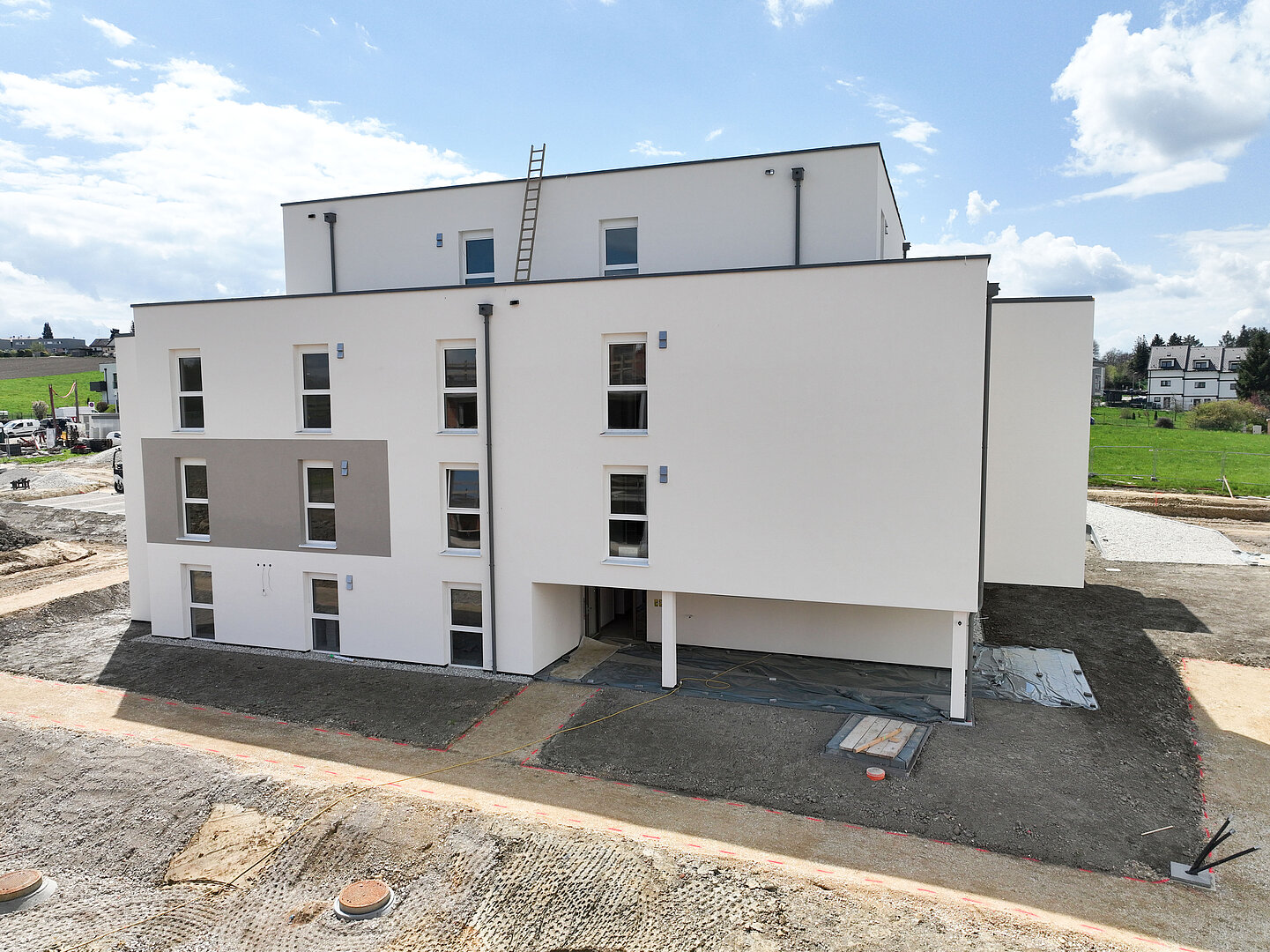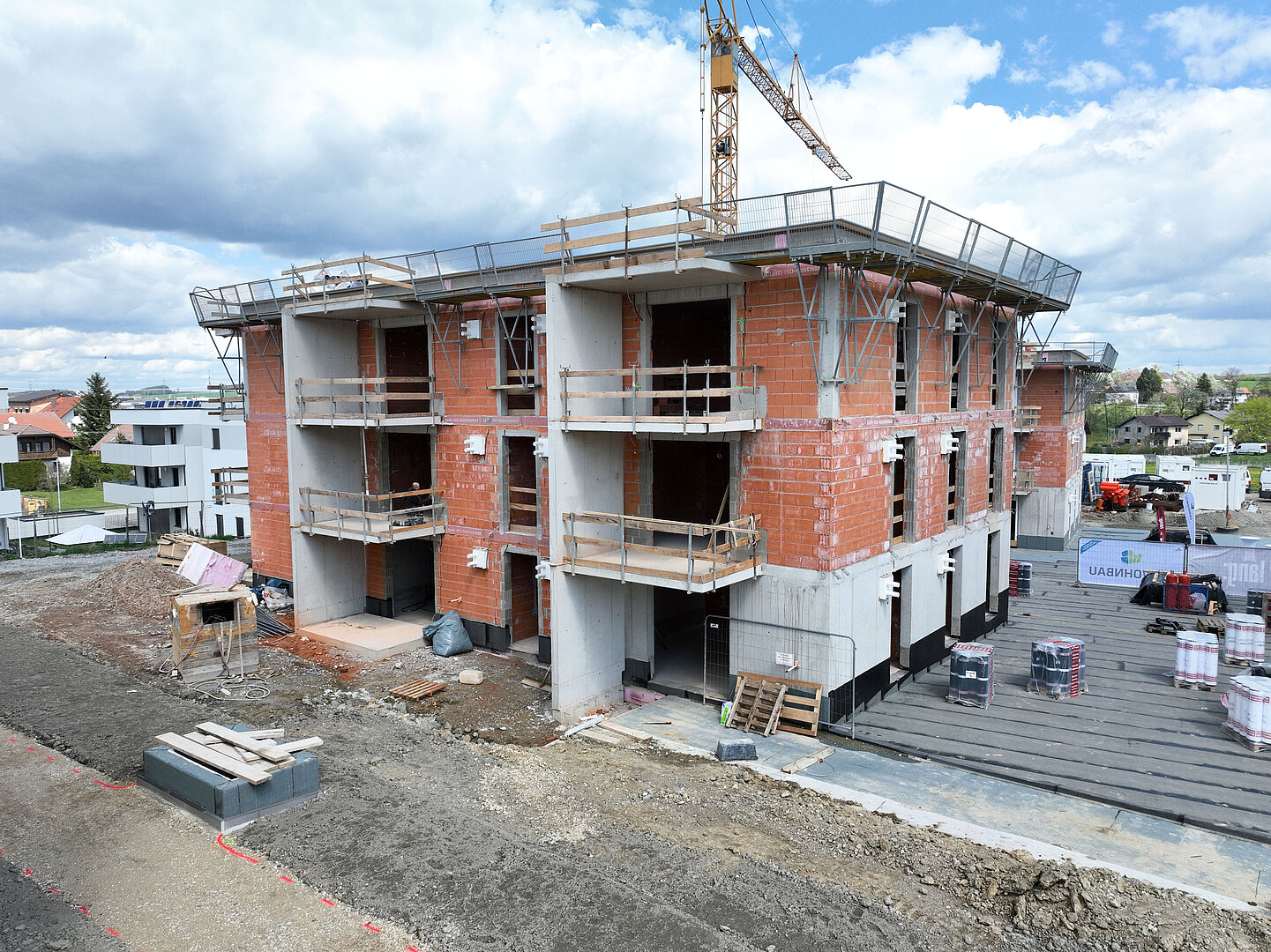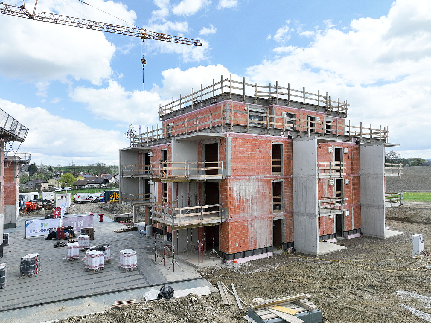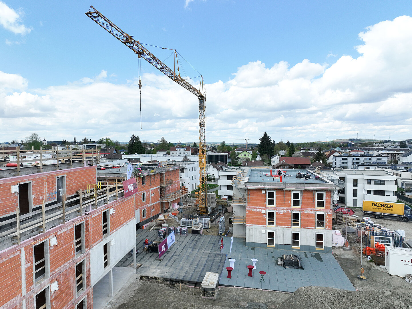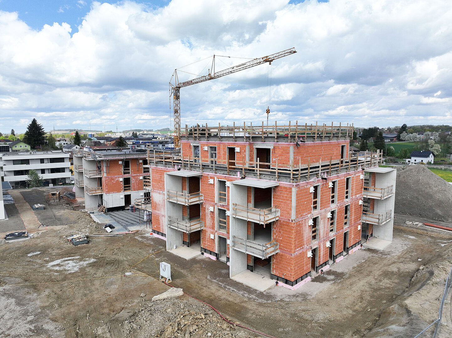 Am 20. April fand im Beisein der Baufirma Lang Bau, weiterer ausführender Unternehmen sowie geladener Ehrengäste die Gleichenfeier für den zweiten Bauabschnitt statt, in dem 34 geförderte Mietwohnungen mit Kaufoption errichtet werden. In dieser zweiten Bauetappe werden drei Wohnhäuser realisiert, die über eine gemeinsame Tiefgarage miteinander verbunden sind. Ergänzend dazu werden im Außenbereich zusätzliche Parkmöglichkeiten für Bewohner:innen und Besucher geschaffen.