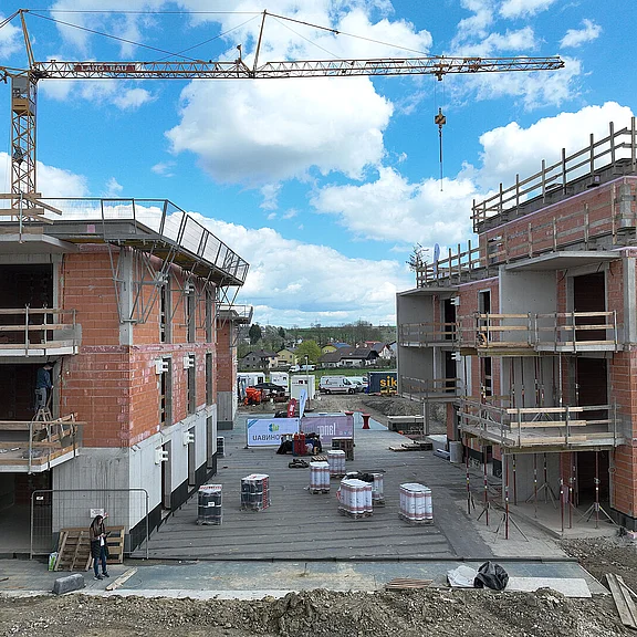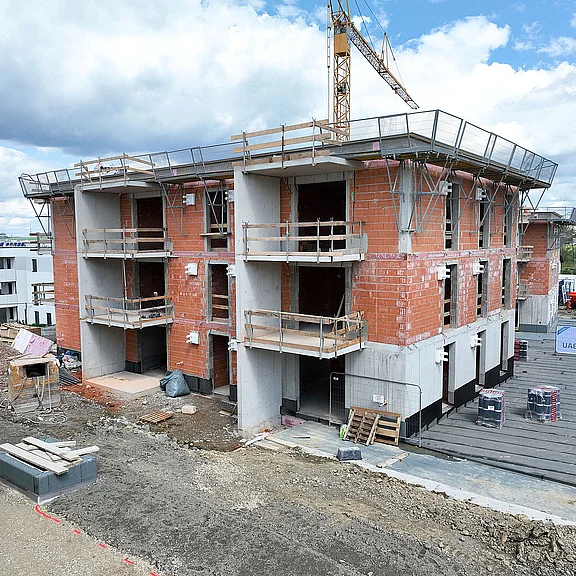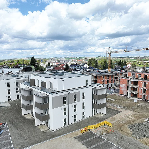 Bereits im ersten Bauabschnitt wurden drei Wohnhäuser mit insgesamt 34 geförderten Wohnungen in Miete mit Kaufoption erfolgreich realisiert.