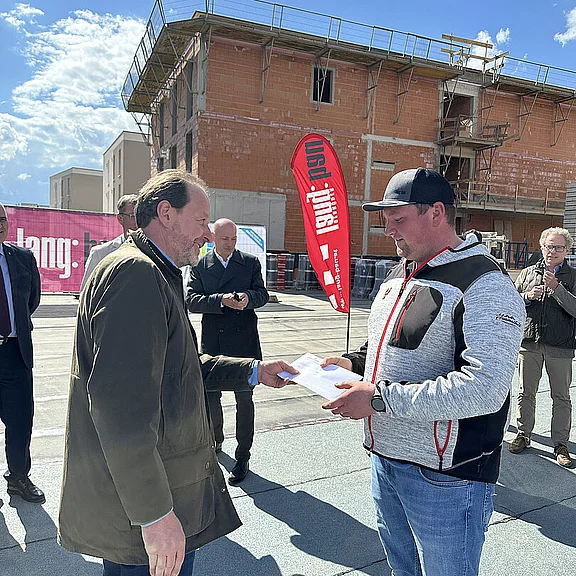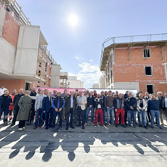 Am 20. April fand in Ried im Innkreis, Berta-Brader-Weg die Gleichenfeier für 34 geförderte Mietwohnungen mit Kaufoption statt