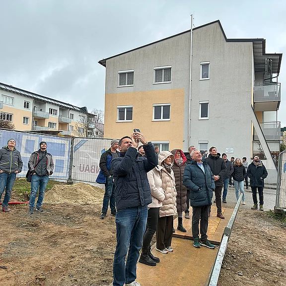 Am 30. März fand die Gleichenfeier für die 40 geförderten Mietwohnungen mit Kaufoption statt