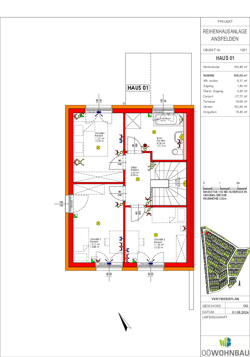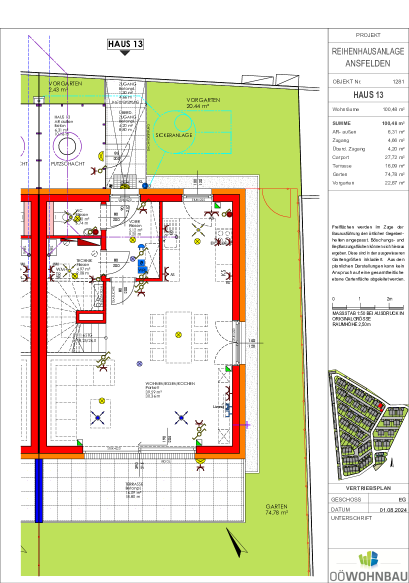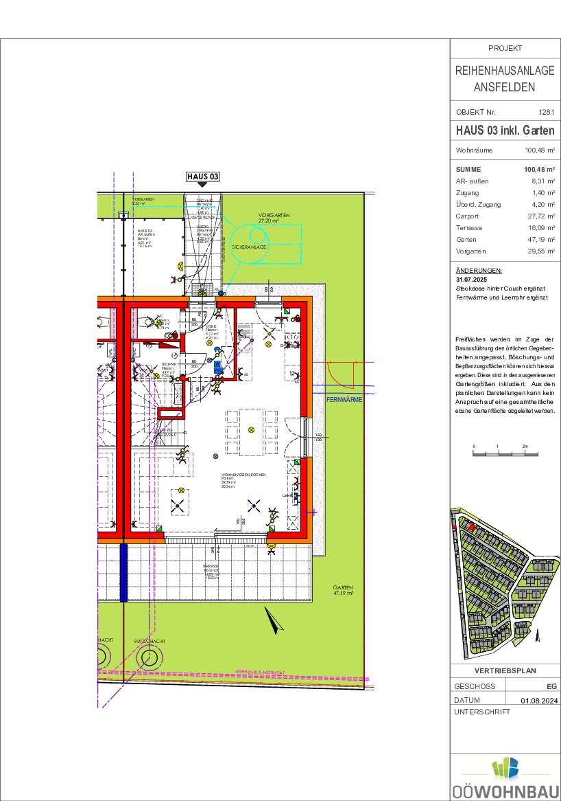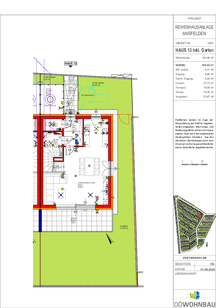 Die OÖ Wohnbau plant die Umsetzung von förderbaren Doppel- und Reihenhauseinheiten in der Rechtsform förderbares Eigentum und Miete mit Kaufoption in mehreren Bauetappen. Die Liegenschaft befindet sich ca. 1,5 km östlich vom Stadtzentrum Ansfelden/Haid. Die Stadtgemeinde Ansfelden deckt mit ihren Einrichtungen den Bedarf des täglichen Lebens ab: Lebensmittelmärkte, Bäcker, Apotheke, Ärzte, mehrere gastronomische Betrieb ebenso Kindergärten und Krabbelstube, Volks- und Hauptschule u.v.m. In unmittelbarer Nähe befinden sich öffentliche Verkehrsmittel.