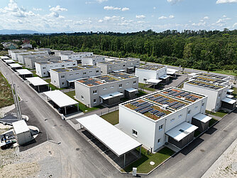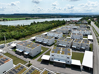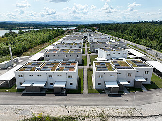 Durch eine eigens errichtete Nahwärmezentrale und durch die Installation der Wohnraumlüftung werden die Anforderungen an das Optimalenergiehaus erfüllt.