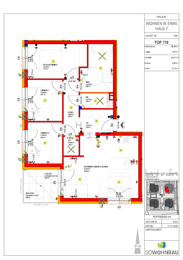 - Freiflächen: 8,00 m² (Loggia + Balkon)
