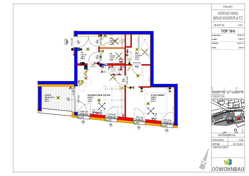 - Freiflächen: 8,24 m² (Loggia + Balkon)