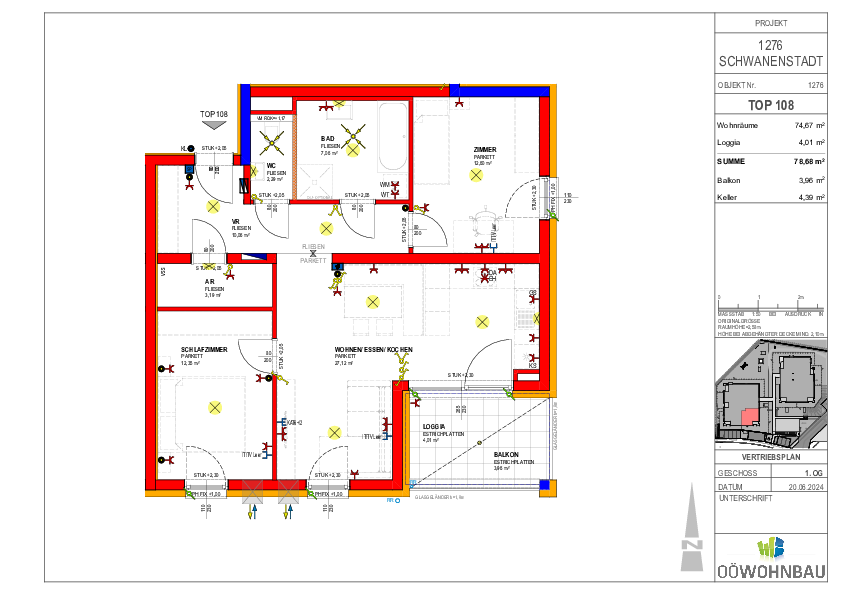 - Freiflächen: 8 m² (Loggia + Balkon)