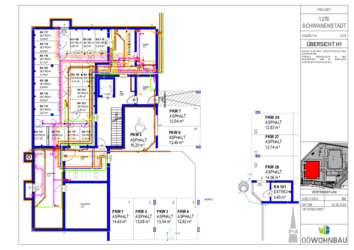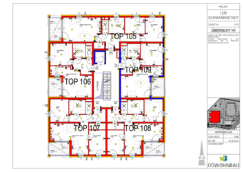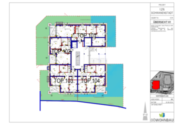 Neben der bestehenden Wohnanlage Alleehof 1-3 werden zwei weitere Wohnhäuser mit 43 Wohneinheiten errichtet. Die vier bzw. fünf Geschoße werden jeweils durch ein zentrales Stiegenhaus mit Lift erschlossen.