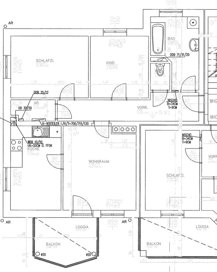 - Freiflächen: 7,14 m² (Loggia + Balkon)
