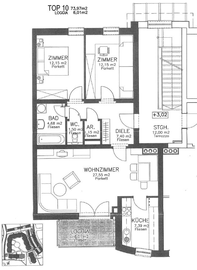 Mtl. Miete inkl. BK, Parkplatz im Freien und USt.