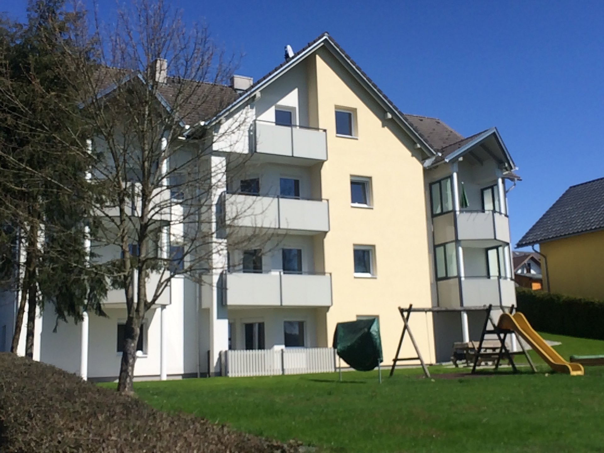 Die ruhig gelegene Wohnanlage wurde in den Jahren 1992/1993 erbaut und verfügt über insgesamt 9 Wohnungen, verteilt auf 3 Stockwerke. 2015 wurde die Anlage außen vollsaniert. Im Gartengeschoß befinden sich neben der Wohnung Nr. 1 die Allgemeinräume wie Fahrrad- und Trockenraum sowie die zu den Wohnungen zugeordneten Kellerabteile. Zur Anlage gehört ein großer Spielplatz samt Grünfläche. Die Parkplätze sind straßenseitig situiert. Ein Vorteil dieses Wohnobjektes ist die Nähe zum Schigebiet Hochficht.