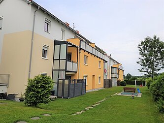 Die ruhig gelegene Wohnanlage am Rande des Gemeindegebietes wurde im Jahr 1997 erbaut und verfügt über insgesamt 18 Wohnungen, verteilt auf 3 Gebäude. 2016 wurde das Haus außen vollsaniert. In den Untergeschoßen befinden sich jeweils die Allgemeinräume sowie die zu den Wohnungen zugeordneten Kellerabteile. Hinter der Anlage ist eine große Grünfläche samt Spielplatz angelegt. Die Parkplätze sind straßenseitig situiert.