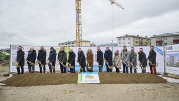 Baustart für Wohnbauprojekt in Enns: Am 24. Februar fand in Enns die Spatenstichfeier für den ersten Bauabschnitt mit 55 Mietwohnungen mit Kaufoption…